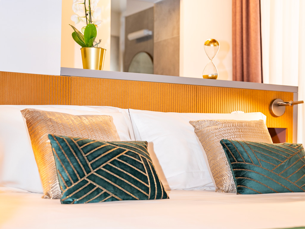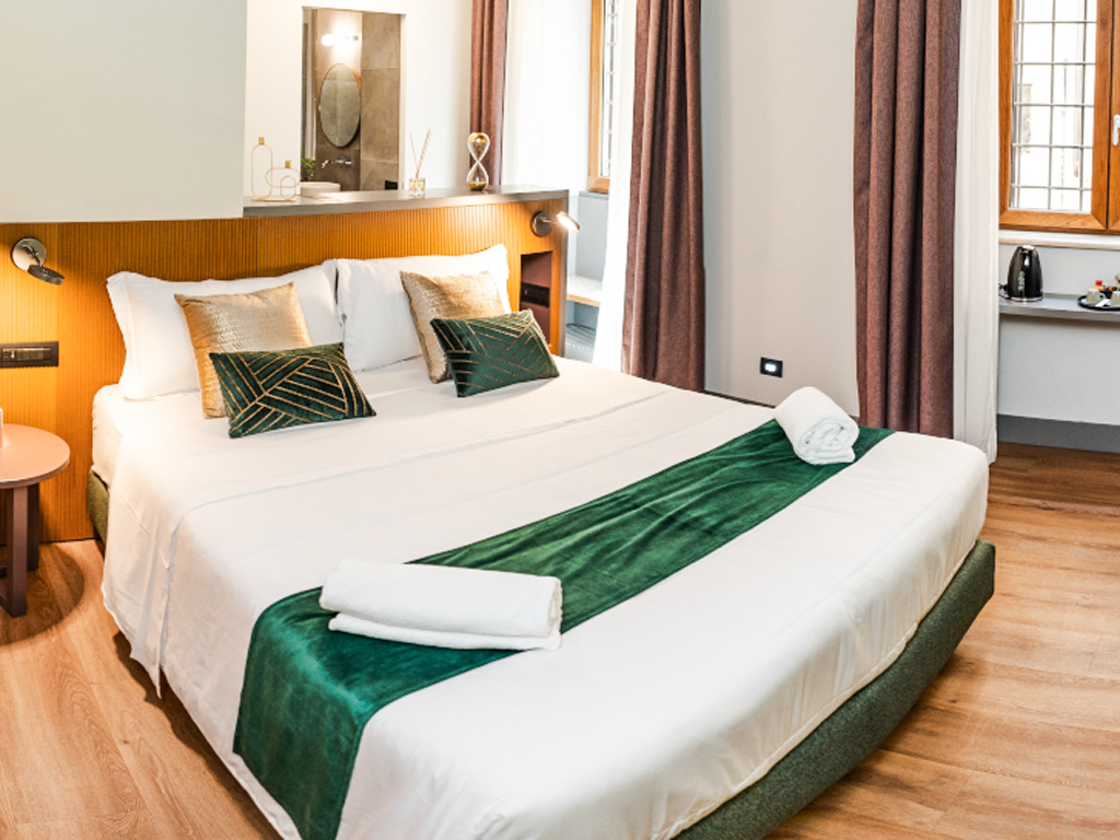 Quattro suite, quattro nomi che hanno segnato la storia dell’Impero Romano. Traiano, Caracalla, Diocleziano e Costantino: ogni camera rende omaggio allo splendore dell’antichità, trasformando il tuo soggiorno in un viaggio nella memoria della Città Eterna. Un modo unico per vivere Roma, immersi nel fascino dei suoi protagonisti.
